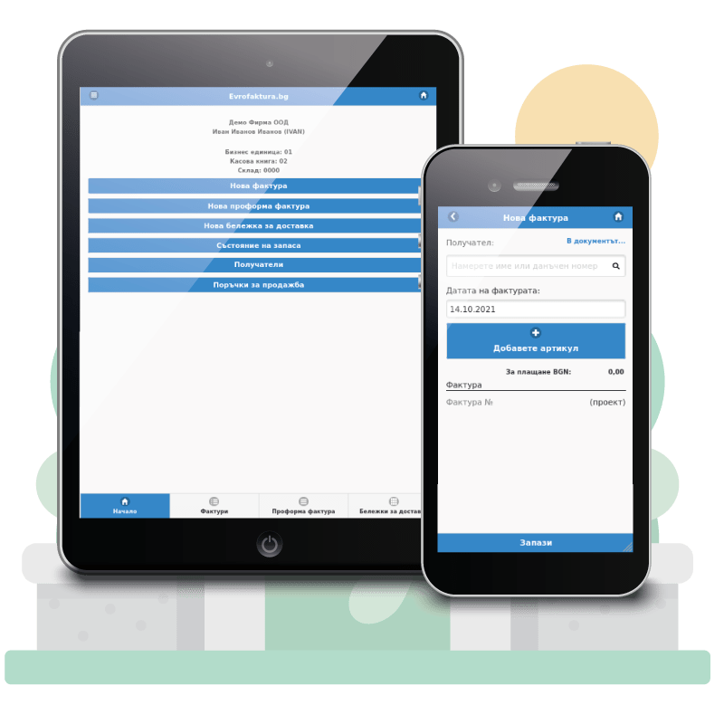 - отпечатвате фактури чрез мобилен Bluetooth принтер;