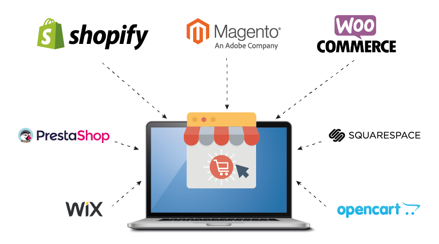 Еврофактура автоматично се свързва с интернет магазини на платформите Magento, Woocommerce, Wix, Stripe, Squarespace, Prestashop, Opencart и Shopify.